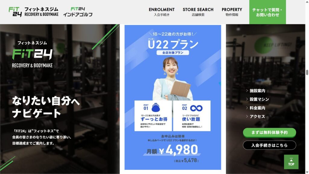 前通っていたFiT24では22歳以下割引があり、