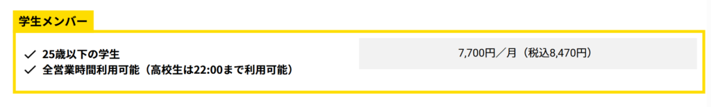 そして、学割適用の店舗が多いのも嬉しいポイント。学割だと1万円未満で通えますよ。