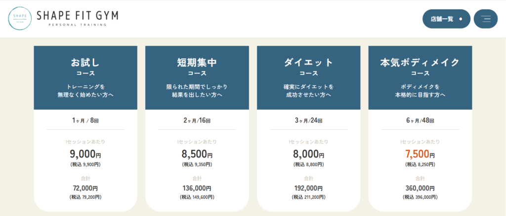 出典:プランと料金|SHAPE FIT GYM